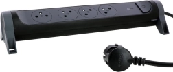 Ohranite red okoli pisalne mize in v dnevni sobi. Ta črn podaljševalni kabel s štirimi vtičnicami in 1,5 m kablom zanesljivo napaja vaše naprave – od prenosnika in svetilke do polnilnikov. Zaradi kompaktnih mer in univerzalne zasnove se poda v vsak interier.