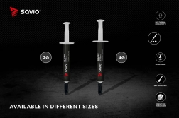 Pasta Savio TG-03 zagotavlja učinkovit odvod toplote zahvaljujoč ogljikovim mikrodelcem, popolno prileganje površinam ter hiter prenos toplote.