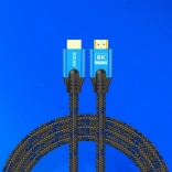 Uživajte v izjemno ostri sliki in gladkem gibanju s HDMI kablom 2.1, ki zmore do 8K@120 Hz in je združljiv tudi z različicami 1.0–2.0. Tekstilni oplet poveča vzdržljivost, pozlačeni konektorji zagotavljajo stabilen stik, OFC baker pa skrbi za brezhiben prenos signala.