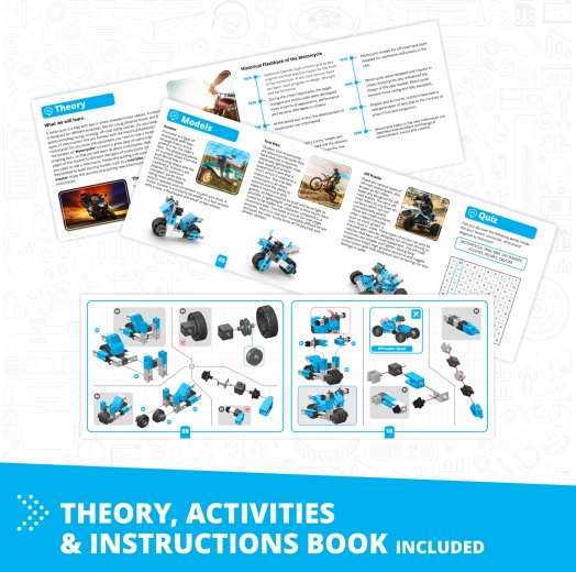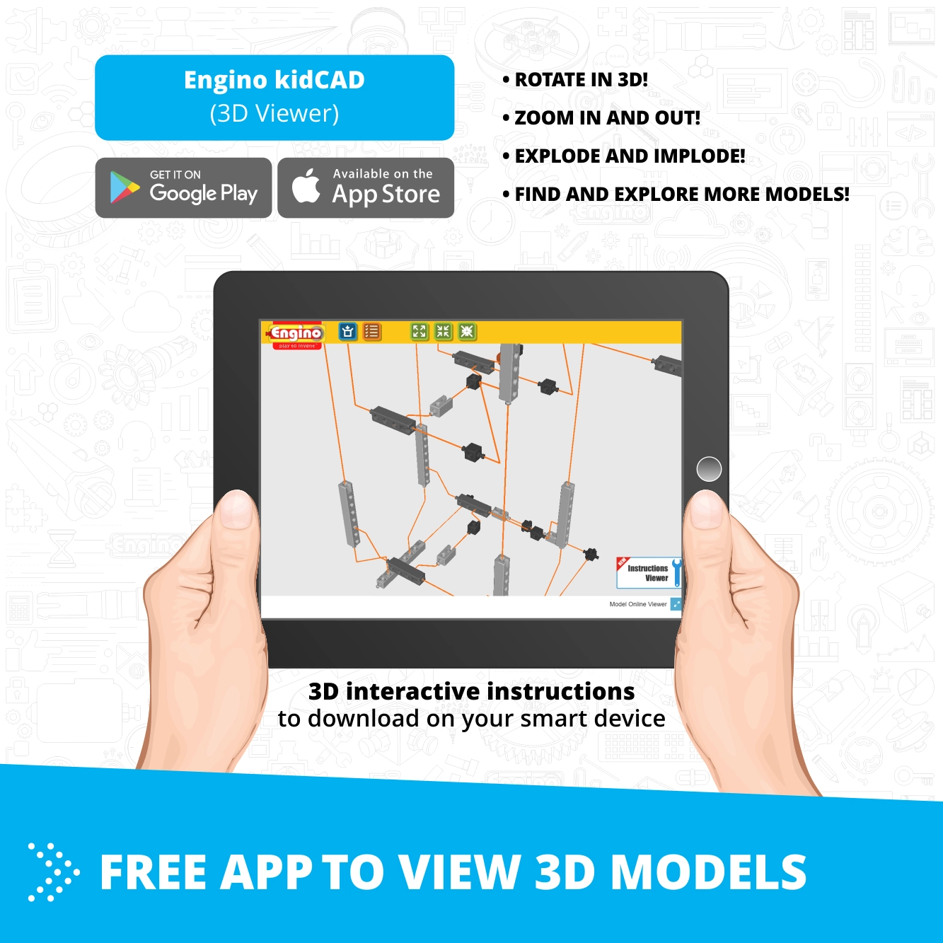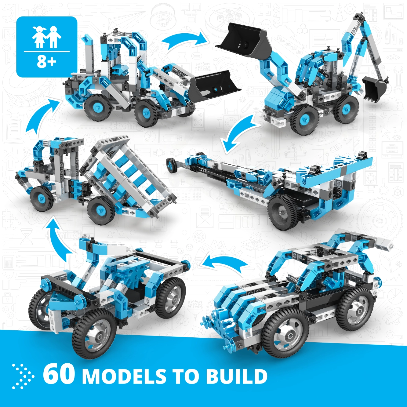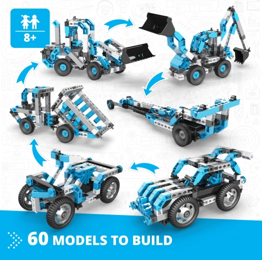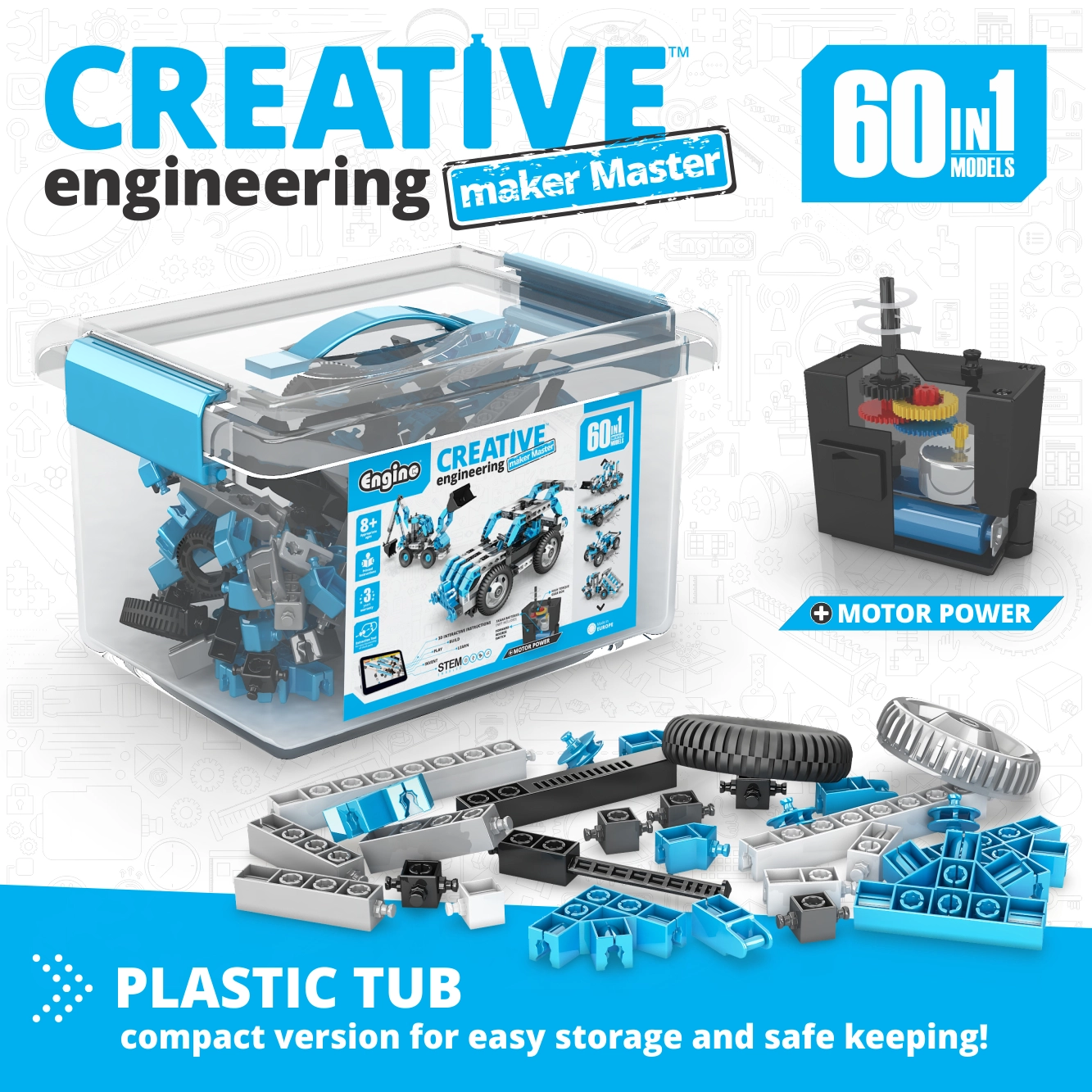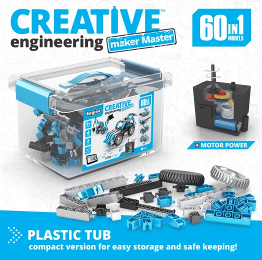 Konstruktor ENGINO Motorized Maker 60 v 1 je idealna izbira za otroke od 8 let naprej, ki imajo radi tehnologijo in ustvarjanje. Barvni priročniki (del tiskani, del na spletu ali v brezplačni 3D aplikaciji) vas vodijo skozi gradnjo desetin modelov. Deli se preprosto zaskočijo, celoten komplet pa je shranjen v praktičnem plastičnem kovčku za enostavno prenašanje in shranjevanje.