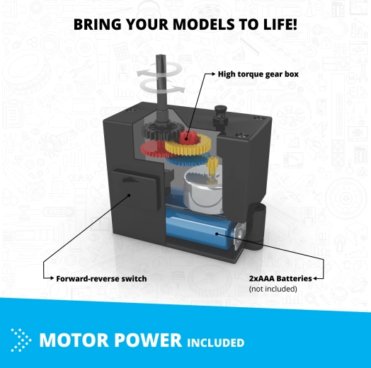 Z zmogljivim motorjem z reduktorjem in visokim navorom bodo vaši modeli oživeli v gibanju. Konstruktor podpira principe STEM (znanost, tehnologija, tehnika, matematika) ter spodbuja otroke k eksperimentiranju in k ustvarjanju lastnih konstrukcij.