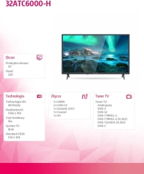 Ta 32-palčni LED televizor ALLVIEW je odlična izbira za vsakodnevno gledanje filmov, serij in novic. Zahvaljujoč kakovostnemu panelu ponuja ostre podrobnosti in naravne barve, medtem ko se tanki robovi in eleganten videz podajo modernemu interierju.