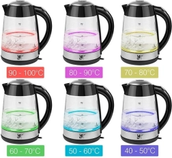 Regulacija temperature omogoča nastavitev med 40-100 °C, popolno za različne vrste čajev. Spreminjajoča se barva osvetlitve nakazuje nastavljeno temperaturo in stanje ogrevanja.