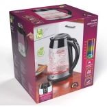 Električni grelnik Lafe je opremljen z močjo 2200 W, ki zagotavlja hitro vretje vode. Odporen je na temperaturne spremembe zahvaljujoč visokokakovostnemu steklenemu vrču. Grelnik ima naslednje lastnosti: