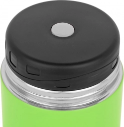 Zaradi čvrstega, tesnega pokrova lahko varno prenašate tudi tekočo vsebino brez nevarnosti razlivanja. Kompaktne mere in sodobna zelena izvedba se prilegajo tako v nahrbtnik kot torbo. Enostavno vzdrževanje in udobno polnjenje olajšata uporabo vsak dan.