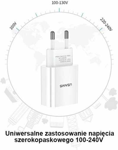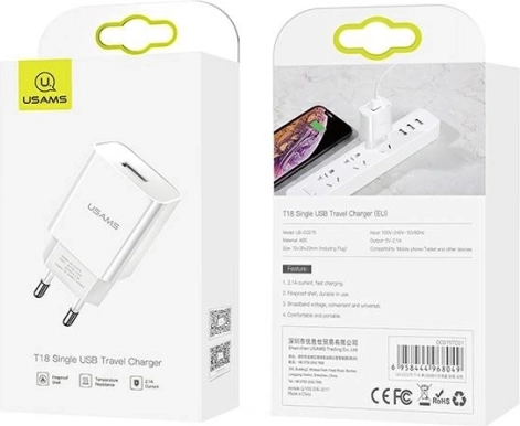 USAMS T18 je zanesljiv in trpežen omrežni polnilec z enim USB vhodom, idealen za hitro in varno polnjenje naprav.