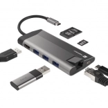 Razširite svoj prenosnik z 3× USB 3.0, HDMI, RJ‑45, SD in microSD – vse prek enega USB‑C. Hitra kopiranja (do 5 Gb/s) in takojšnja pripravljenost zahvaljujoč plug‑and‑play.