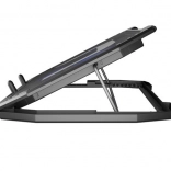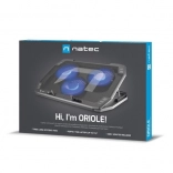 NATEC Oriole je zanesljiva hladilna podloga, zasnovana za delo in igranje. Trije tihi 120 mm ventilatorji učinkovito znižujejo temperature, z 3-stopenjsko regulacijo hitrosti pa zlahka preklapljate med največjo zmogljivostjo in tihim delovanjem. Kovinska perforirana mreža izboljša pretok zraka in poveča vzdržljivost celotne konstrukcije.