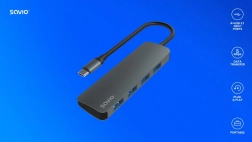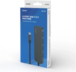 Razširite povezljivost svoje naprave z USB‑C s kompaktnim hubom Savio. Štiri vrata USB‑A omogočajo hkratno povezavo zunanjih diskov, tipkovnic, mišk in drugih perifernih naprav. Standard USB 3.1 Gen 1 zagotavlja hiter prenos podatkov do 5 Gbps, naprava pa je združljiva nazaj s starejšimi različicami USB.
