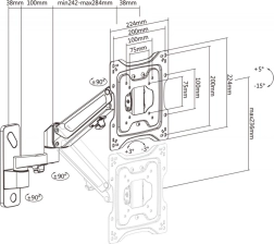 Nastavljiv stenski nosilec za monitorje blagovne znamke DIGITUS omogoča pritrditev ploskih in ukrivljenih monitorjev do velikosti 43 palcev in teže do 23 kg. S pomočjo plinske vzmeti in vrtljive roke lahko enostavno prilagodite položaj monitorja.