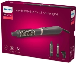 Sočasno sušenje in oblikovanje s Philips Air Styler Essential omogoča ustvarjanje čudovitih, naravnih pričesk ter nudi nego las. Trije nastavki so primerni za dolge in kratke lase, zato je oblikovanje zelo preprosto.