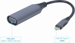 Ta kompaktni adapter USB‑C na VGA (D‑Sub) je odlična rešitev za povezavo sodobnih naprav s starejšimi zasloni. Le priključite ga in takoj lahko predstavljate, razširite delovno površino ali zrcalite vsebino v Full HD 1080p/60 Hz.