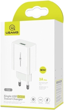 Omrežni polnilec USAMS T22 s hitrim polnjenjem QC 3.0 zagotavlja učinkovito polnjenje vaše naprave, jo ščiti z inteligentnim upravljanjem in je izdelan iz negorljivega materiala.