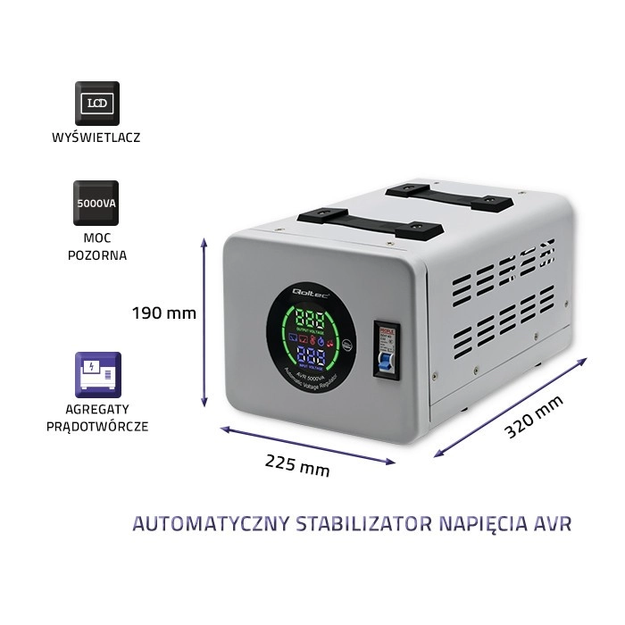 Potrebujete zanesljivo napajanje za orodje, kompresorje, črpalke ali opremo v food trucku ali avtodomu? Avtomatski stabilizator napetosti QOLTEC AVR 5000 VA izravnava nihanja omrežja in ščiti občutljivo elektroniko. Stabilizira vhod na varnih 230 V, odpravlja napetostne sunke in ob preseženi napetosti odklopi bremena, da prepreči poškodbe.