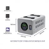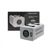 Osvetljen LCD prikazuje vhodno in izhodno napetost. Kovinsko ohišje, učinkovito prezračevanje in ročaji olajšajo prenašanje ter montažo v različnih okoljih.
