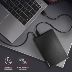 AXAGON ALINEbox je idealna izbira za zaščito in odlično zmogljivost vašega HDD. Omogoča hiter in enostaven prenos podatkov zahvaljujoč podpori UASP in USB 3.2 Gen 1. Odlično odvajanje toplote zagotavlja aluminijasta konstrukcija, ki prispeva tudi k skupni mehanski zaščiti diska.