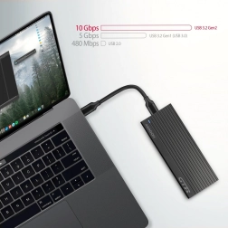 To aluminijasto zunanje ohišje AXAGON za M.2 NVMe SSD je idealno za izjemno hitre prenose podatkov. Zahvaljujoč obojestranskemu priključku USB‑C in priloženemu kablu USB‑C -> USB‑C lahko uporabniki enostavno povežejo svoj SSD z računalnikom, telefonom ali tablico.
