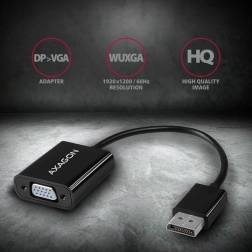 Adapter DisplayPort na VGA podjetja AXAGON omogoča priklop starejših monitorjev VGA, televizorjev ali projektorjev na računalnik z izhodom DisplayPort brez potrebe po namestitvi programske opreme.