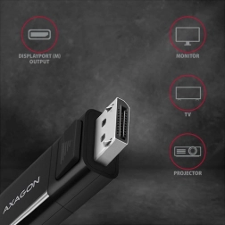 Aktivni kabel AXAGON USB‑C na DisplayPort preprosto poveže prenosnik, računalnik ali telefon z monitorjem, TV ali projektorjem. Ponuja ločljivost do 4K/60 Hz, standard DisplayPort 1.2, dolžino 1,8 m ter zanesljiv prenos slike in zvoka. Namestitev je plug & play, pretvorba je enosmerna (USB‑C → DP) in zahteva napravo z DP Alt Mode ali Thunderbolt 3.