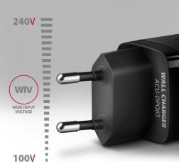 Kompakten potovalni polnilec AXAGON GaN 65W hitro napolni do tri naprave hkrati. Zahvaljujoč tehnologiji GaN ponuja visoko moč v majhnem ohišju, dva priključka USB‑C s Power Delivery 3.0/QC 4+ in en USB‑A s QC 3.0. Podpira PPS, Samsung SFC/SFC 2.0 ter Apple PD 20–27 W in zmore napajati tudi prenosnike do 65 W.