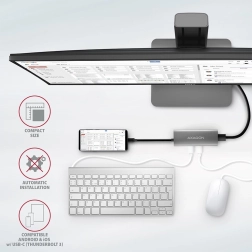 - Razširitev USB-C prenosnikov (npr. MacBook) z USB-A priključki in HDMI izhodom