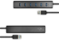 Kompaktna aluminijasta zasnova z zadostnimi razmaki med vrati omogoča priklop tudi večjih naprav. Trden 40 cm kabel je idealen za prenosnike.