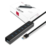 Sedem vrat s podporo SuperSpeed zagotovi nemoten prenos velikih datotek in zanesljivo priklop perifernih naprav. Združljivo nazaj z USB 2.0/1.1.