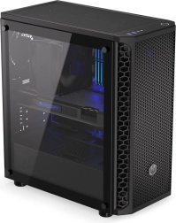 Bočnica iz kaljenega stekla poudari vaš strojni del in osvetlitev. V notranjosti je prostor za do 4× 2,5" diske (ali 2× 2,5" + 2× 3,5"), grafične kartice do 325 mm in zračne hladilnike CPU do 161 mm. Podpora vodnemu hlajenju do 360 mm spredaj in 240 mm zgoraj daje proste roke tako zmogljivim kot tihim sestavam.