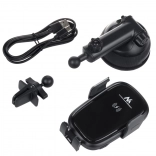 Pametni avtomobilski nosilec s podporo Qi ponuja hitro brezžično polnjenje 5/7,5/10/15 W, avtomatsko stiskanje telefona in stabilen oprijem tudi na neravnih cestah. Zahvaljujoč dvojni montaži na steklo/armaturno ploščo ali v zračnik ter vrtljivemu 360° zglobu zlahka nastavite idealen kot. Vgrajen kondenzator poskrbi za odpiranje rok tudi po odklopu napajanja.