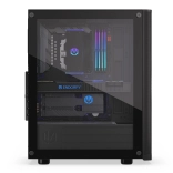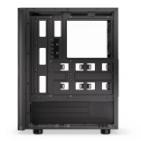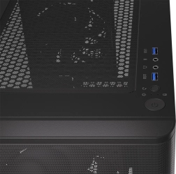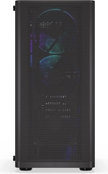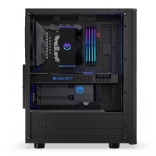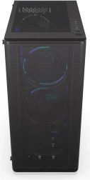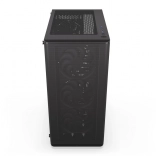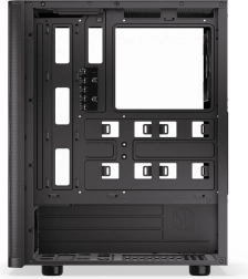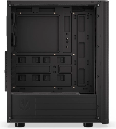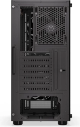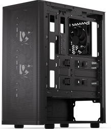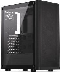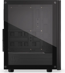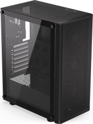 Bočna plošča iz kaljenega stekla elegantno razstavi komponente, medtem ko trdna konstrukcija ohišja ponuja prostor za zmogljive sestave. Brez težav namestite ATX osnovno ploščo, do 3× 2,5" pomnilniških enot (ali 1× 3,5" + 2× 2,5") ter velike hladilnike oziroma vodne zanke z radiatorji 360 mm (spredaj) in 240 mm (zgornja plošča).