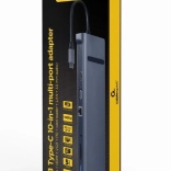 10-v-1 adapter USB-C je odličen način za razširitev priključkov vaše naprave. V eno kompaktno enoto združuje HDMI, VGA, USB, LAN in druge ključne funkcije.