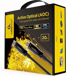 Kabel AOC HDMI z dolžino 20 m uporablja optično tehnologijo za prenos digitalnega signala, kar omogoča prenos na večje razdalje brez tveganja motenj EMI/RFI.