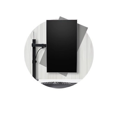 Ročica omogoča vrtenje za 90°, nagib za 45° in skupen doseg gibanja do 399 mm za optimalno nastavitev zaslona.