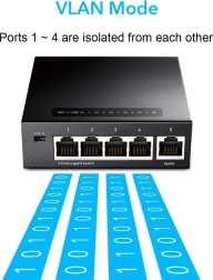 Podpira standarde IEEE 802.3, IEEE 802.3u, IEEE802.3x in IEEE 802.3ab, ponuja zanesljiv prenos podatkov z funkcijo Store-and-Forward. Njegova kovinska konstrukcija zagotavlja dolgo življenjsko dobo in odpornost proti obrabi.