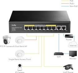 Cudy 10-portni gigabitni PoE+ stikalo je zasnovan za učinkovito upravljanje in distribucijo podatkovnega prometa v omrežju. Ponuja: