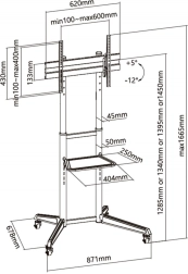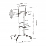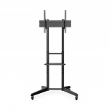 Priložena je praktična polica za prenosnik, predvajalnik ali set-top box (40,4 × 25 cm, max. 5 kg). Štiri kolesa z možnostjo blokade zagotavljajo gladko mobilnost in varno fiksiranje na mestu. Integrirano vodenje kablov ohranja namestitev pregledno in profesionalno. Prašno lakirana površina povečuje odpornost proti obrabi.