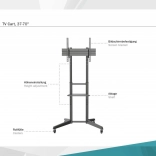 Elegantno in stabilno mobilno TV stojalo je idealno za pisarne, sejne sobe, šole, poslovne prostore in zdravstvene ustanove. Omogoča varno pritrditev televizorja ali zaslona z diagonalo 37–70" in težo do 50 kg. Zahvaljujoč štirim višinskim pozicijam zlahka nastavite idealen položaj gledanja, orodju neprijazna sprememba naklona pa pomaga odpraviti bleščanje.