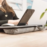 Praktična podloga za na naročje vam omogoča udobno delo kjerkoli – na kavču, v postelji ali na poti. Ponuja stabilno površino za prenosnike do 17", vgrajeno podlogo za miško, držalo za pametni telefon in mehko oblazinjenje za največje udobje. Zahvaljujoč priročnemu ročaju jo zlahka prenašate, medtem ko zadrževalni rob na spodnji strani preprečuje drsenje prenosnika tudi pri naklonu.