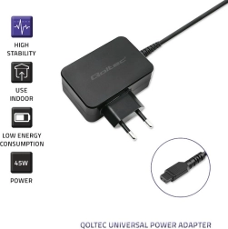 Univerzalni napajalni adapter znamke Qoltec je idealna rešitev za vsakogar, ki potrebuje napajanje različnih naprav z enim adapterjem. Zaradi 8 zamenljivih konektorjev in samodejne prilagoditve napetosti je kompatibilen z večino znamk prenosnikov.