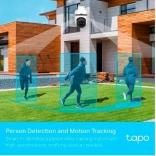 Z varnostno zunanjo kamero Tapo C500 boste imeli mirno vest. Pametne funkcije zaznavanja oseb in sledenja gibanja delujejo z visoko natančnostjo, na vse sumljive aktivnosti boste takoj opozorjeni. Kamera vključuje 360° vodoravno in 130° navpično vidno polje za kar največjo pokritost okolice.