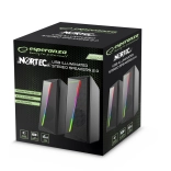 USB LED zvočniki Esperanza Nortec so zasnovani za vse, ki iščejo kakovostno zvočno izkušnjo in hkrati stilski videz. Z integriranim uravnavanjem glasnosti in LED osvetlitvijo RAINBOW zagotavljajo estetsko in funkcionalno dodano vrednost. Združljivi so z vsemi računalniki, opremljenimi z zvočnim izhodom in USB priključkom.