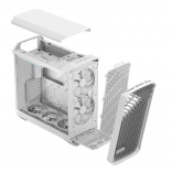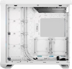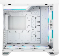 Fractal Torrent je zasnovan tako, da iz škatle ponudi največjo zmogljivost hlajenja. Odprta sprednja mreža in povsem neovirana notranja postavitev dajeta komponentam prostor, da “dihajo”, medtem ko dvojica 180 × 38 mm RGB PWM ventilatorjev spredaj in še trije 140 mm ventilatorji poskrbijo za masiven pretok zraka ob uglajenem hrupu.