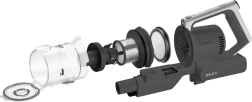 Odstranljiv ročni modul omogoča bliskovito čiščenje oblazinjenja, stopnic in avtomobila, medtem ko pokončna enota poskrbi za tla in težje dostopna mesta.
