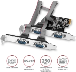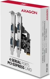 PCI-Express kartica AXAGON PCEA-S4N doda vašemu PC štiri serijska vrata RS-232 s konektorji DB9. Zaradi preverjenega nabora čipov ASIX AX99100 zagotavlja stabilno komunikacijo, visoko prepustnost in polno združljivost z industrijskimi napravami, blagajnami ali CNC stroji. Namestitev je enostavna zahvaljujoč podpori Plug and Play in priloženim pokrovom za standardna in nizkoprofilna ohišja.