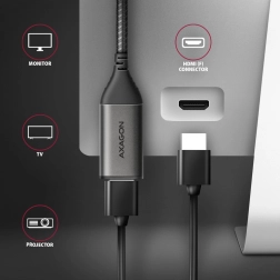 Zaščita in trpežnost sta zagotovljeni z kovinskimi končniki z nikljano površino in pozlačenimi stiki, medtem ko najlonska pletenina zagotavlja dolgo življenjsko dobo. Enosmerna pretvorba iz USB-C na HDMI zahteva podporo za DisplayPort Alternate Mode za pravilno delovanje. Prenos signala je zagotovljen brez potrebe po zunanjem napajanju. Uživajte v enostavnosti in učinkovitosti povezovanja naprav prek USB-C.