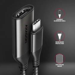 Spoznajte moderen adapter AXAGON, ki bo spremenil vaš pogled na povezavo zaslonov. Enostaven in zanesljiv, ta reduktor zagotavlja kakovost slike do 4K/60Hz Ultra HD. Podpira priljubljene igralne ločljivosti WQHD in FullHD pri visokih frekvencah za maksimalne užitke pri igri. Adapter podpira HDR za širšo barvno paleto in kontraste, kar omogoča popolnoma realistične vizualne izkušnje.