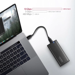 Podpira hitrosti do 10 Gb/s in je povratno združljivo z USB 3.1 in USB 3.0. Ohišje omogoča branje S.M.A.R.T. podatkov, podpira UASP, TRIM in ima funkcijo pripravljenosti za daljšo življenjsko dobo diska.