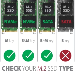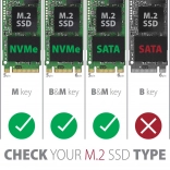Konstrukcija brez vijakov iz črnega aluminija z zračenjem zagotavlja optimalno hlajenje in podaljšuje življenjsko dobo diska. Primerno je za vse velikosti SSD M.2: 2242, 2260 in 2280 mm. Ta izdelek je odlična izbira za vse, ki iščejo elegantno in učinkovito rešitev za shranjevanje in prenos podatkov.