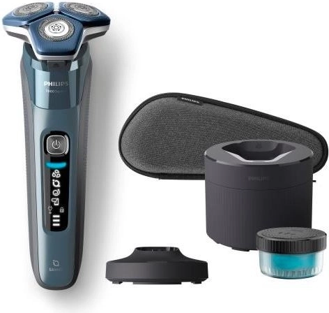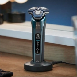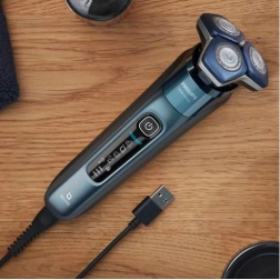 Praktični LED-zaslon prikazuje stanje baterije in potrebo po čiščenju. Moderna zasnova z možnostjo mokrega in suhega britja zagotavlja univerzalno uporabo pod prho ali pri umivalniku. Priložena sta stojalo/čistilna rešitev in potovalna torbica za enostavno vzdrževanje ter varno shranjevanje.