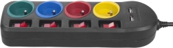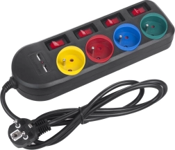 Vsaka iz barvno kodiranih vtičnic ima svoje stikalo, kar omogoča nadzor nad napajanjem naprav in povečuje varnost.